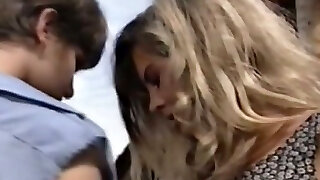 Gorgeous blonde milf with sunglasses feels naughty for a young country girl