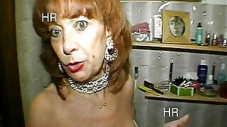 Old but horny German lady dildoing her shaved coochie