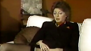 Horny babe jerks in retro lingerie nylons high heels