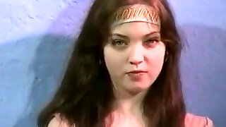 Vintage brunette teen babe masturbates her hairy pussy