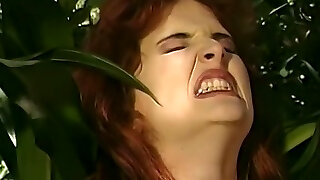 Rothaariges Teenager befriedigt sich in den hohen Wiesen