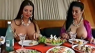 немецкие девчонки с огромными сиськами трахаются с 2 парнями на кухне
