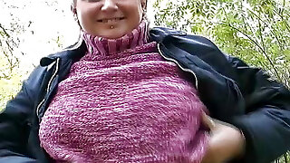 возбужденную и пухленькую немку трахают на заднем сиденье машины