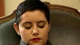 короткие волосы ненасытная брюнетка преподаватель колледжа вдыхает могучий член для спермы