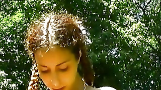 белокурая немецкая репортерша развлекается бдсм в лесу