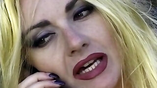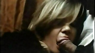 White whore wife Rebeca gives antsy deep throat to a duo of big black dudes