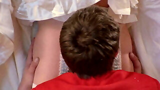 Blondie retro teen sucking cock until getting a facial